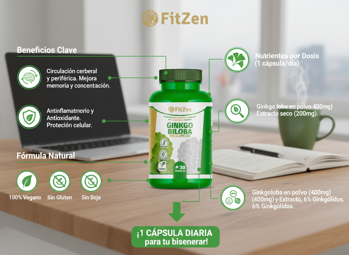Ginkgo Biloba Megaplus – Cápsulas 100% Veganas